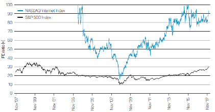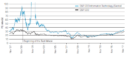 By looking at historical PE valuations we can identify the following three characteristics of technology-related bubbles.